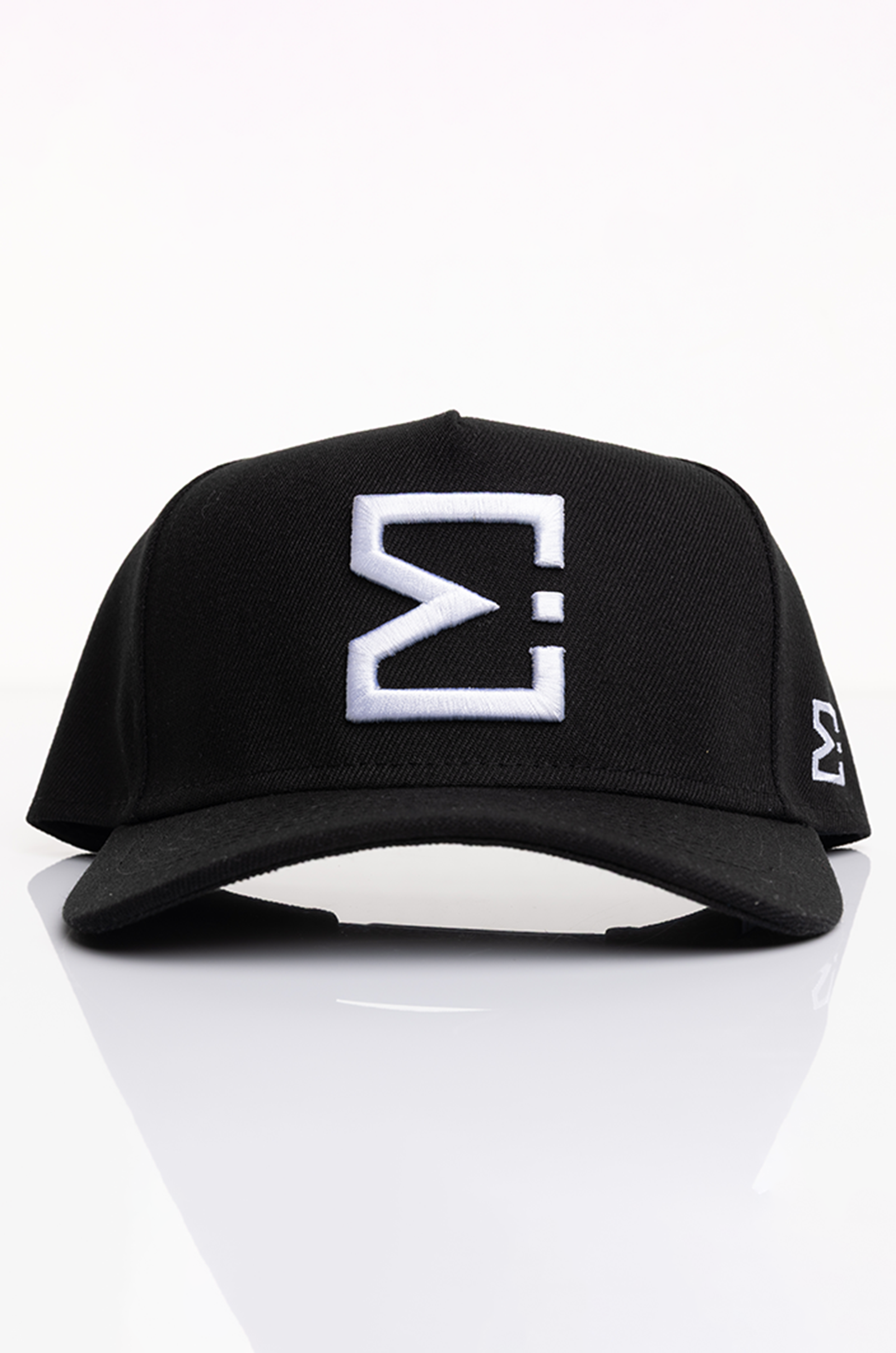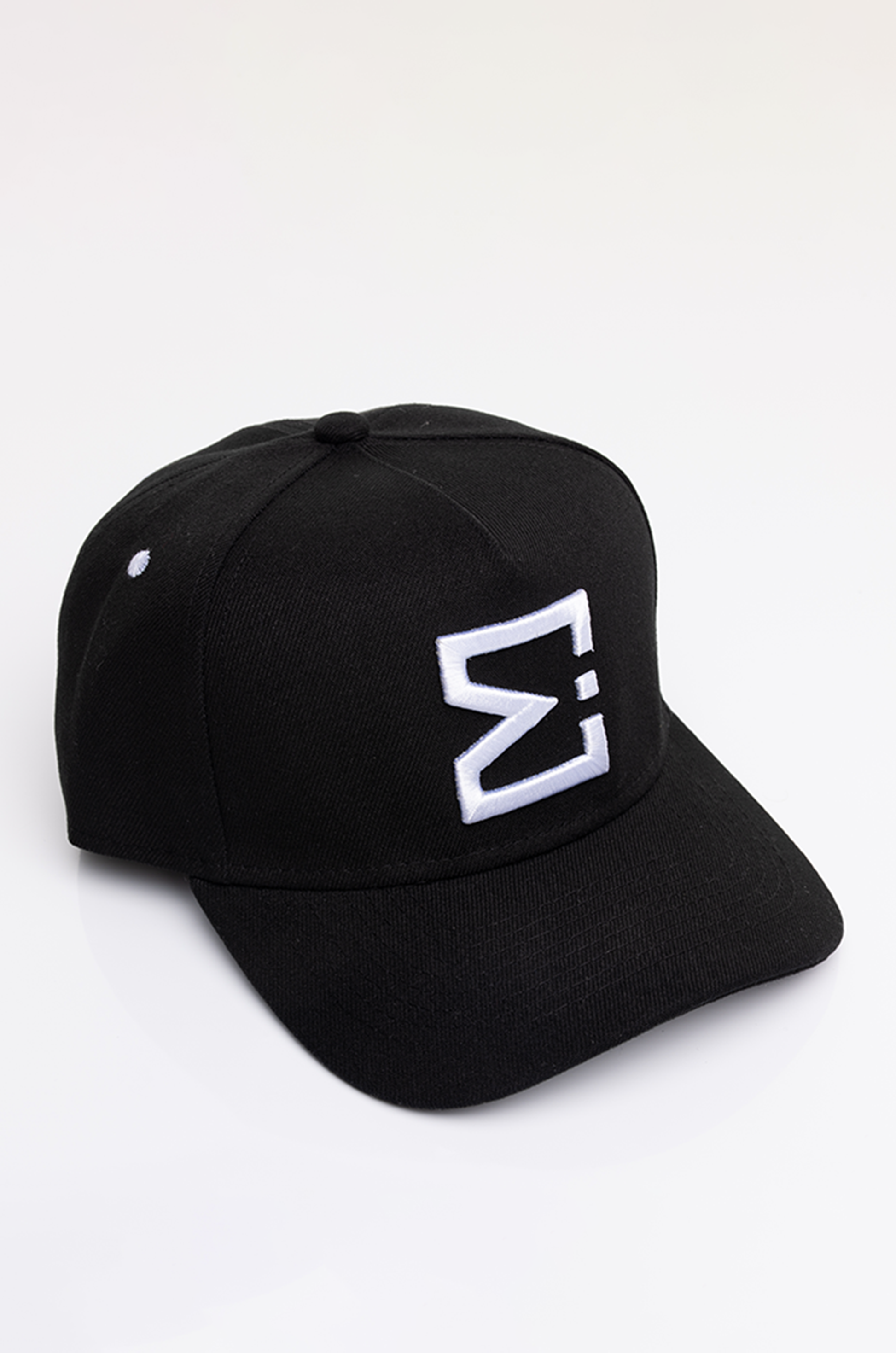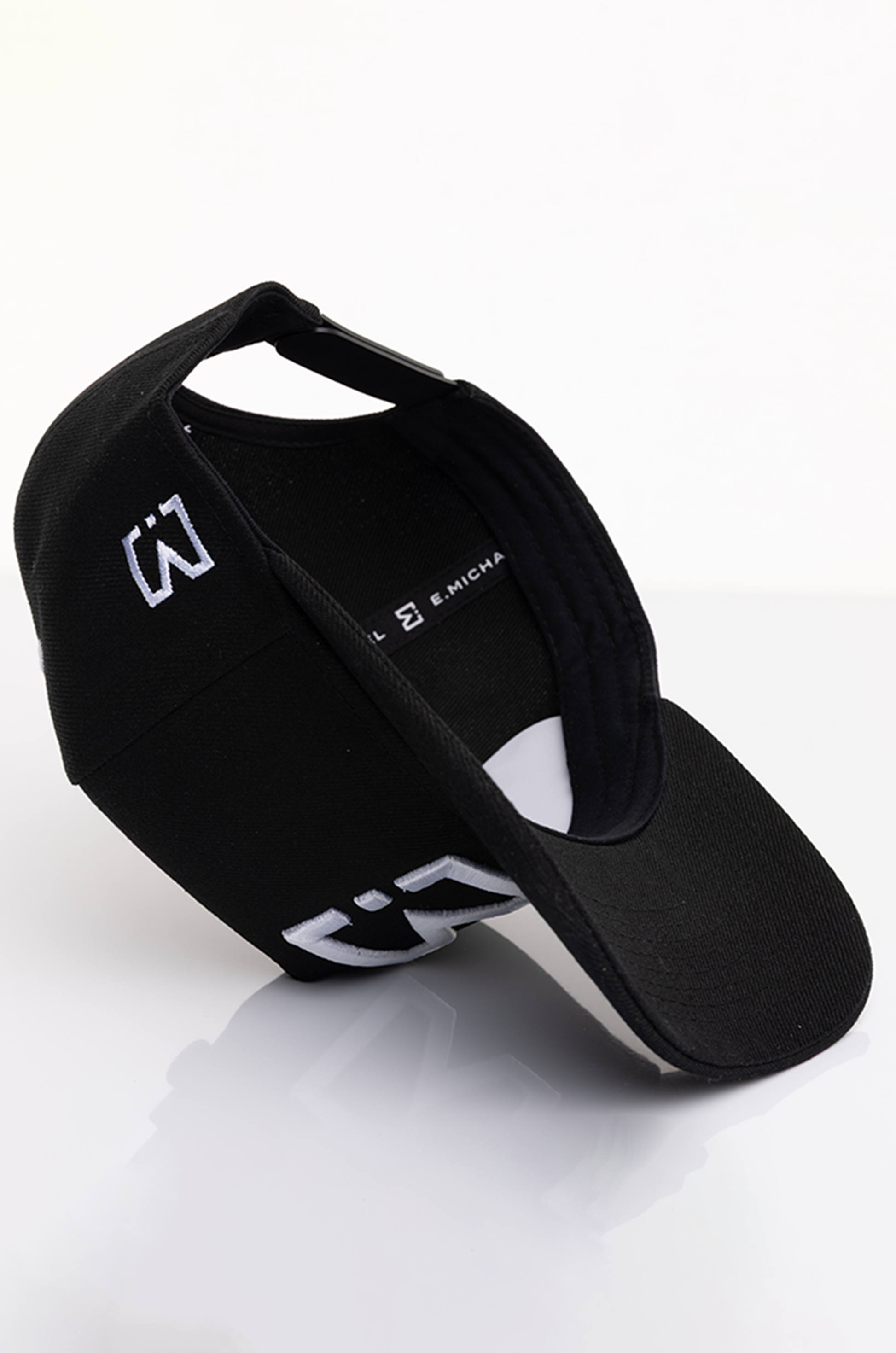 Rendered in Midnight Black with contrast white embroidery, the palette anchors the E. Michael system, balanced, deliberate, and restrained. The structured five-panel crown maintains a clean silhouette, holding its shape with intention.
